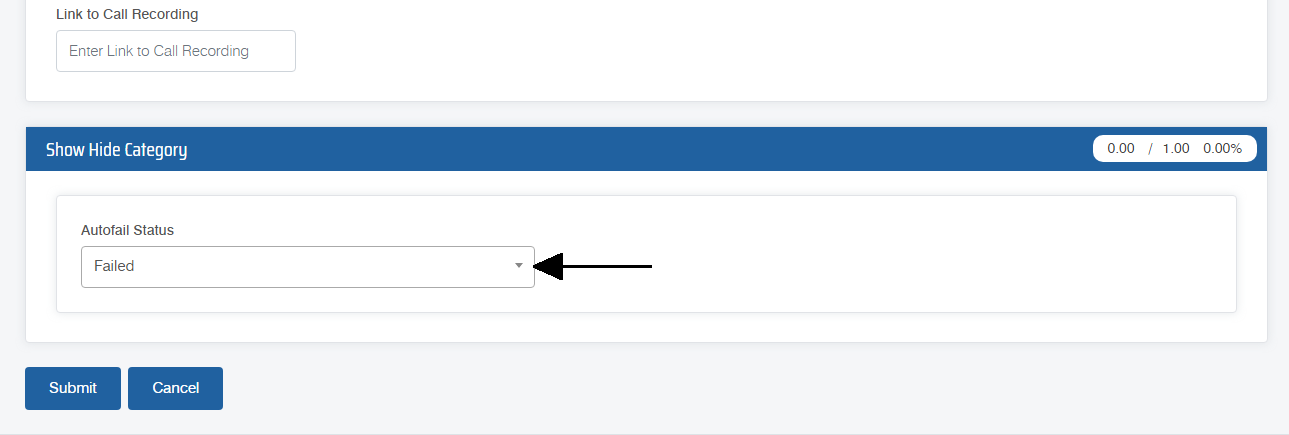 Similarly, when Autofail Status is selected as Failed, that specific category, (here it is Cat1) will be seen hidden as shown below: