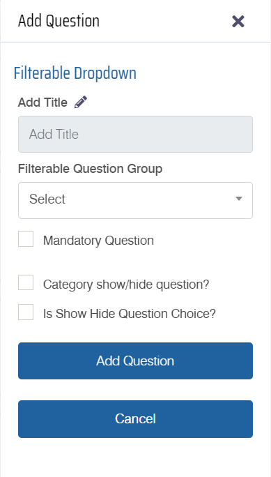 - Filterable Question Group: Select the filterable question group which is to be displayed in the form.