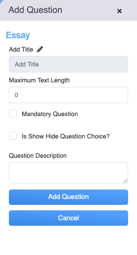 - Maximum text length: Enter the maximum length of text in the essay type of question.