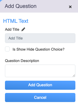 - Is Show/Hide Question?: Select this checkbox if the question will be having a show/hide functionality in the form.