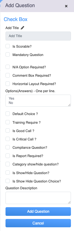 - Options (Answers): Enter the options to be displayed in the form instead of Yes/No.