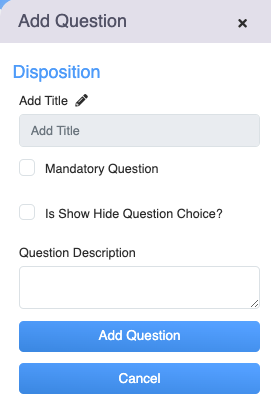 - Is Show Hide Question Choice?: Select this checkbox if the disposition will be having a show/hide functionality in the form.