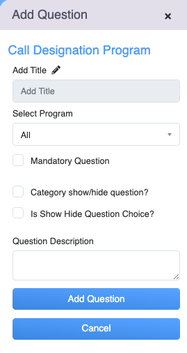 - Select Program: Select the program which is to be displayed in the form. Select program name for adding call designation available for this program only and select all for adding all common call designations available.