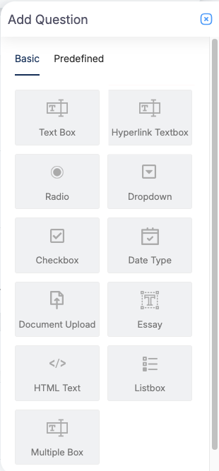 There are two sub-tabs displayed on Add Question screen – Basic and Predefined.