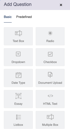 There are two sub-tabs displayed on Add Question screen – Basic and Predefined.