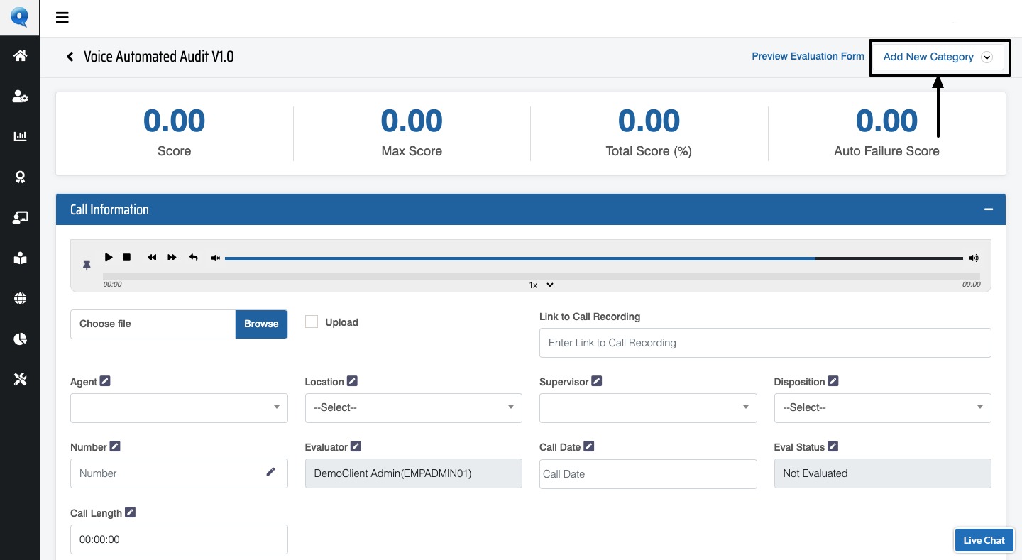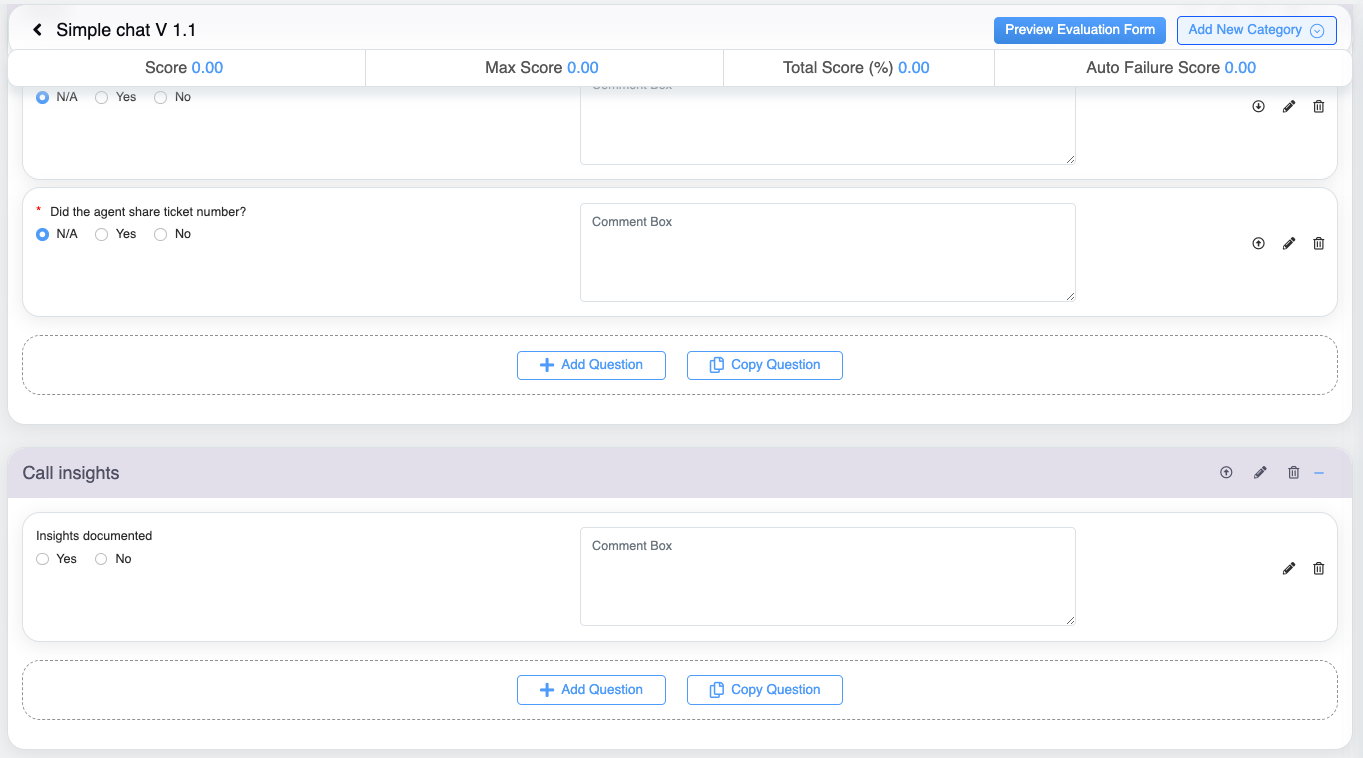 7. Then, click on the Add Question button displayed at the bottom of each category of the form.