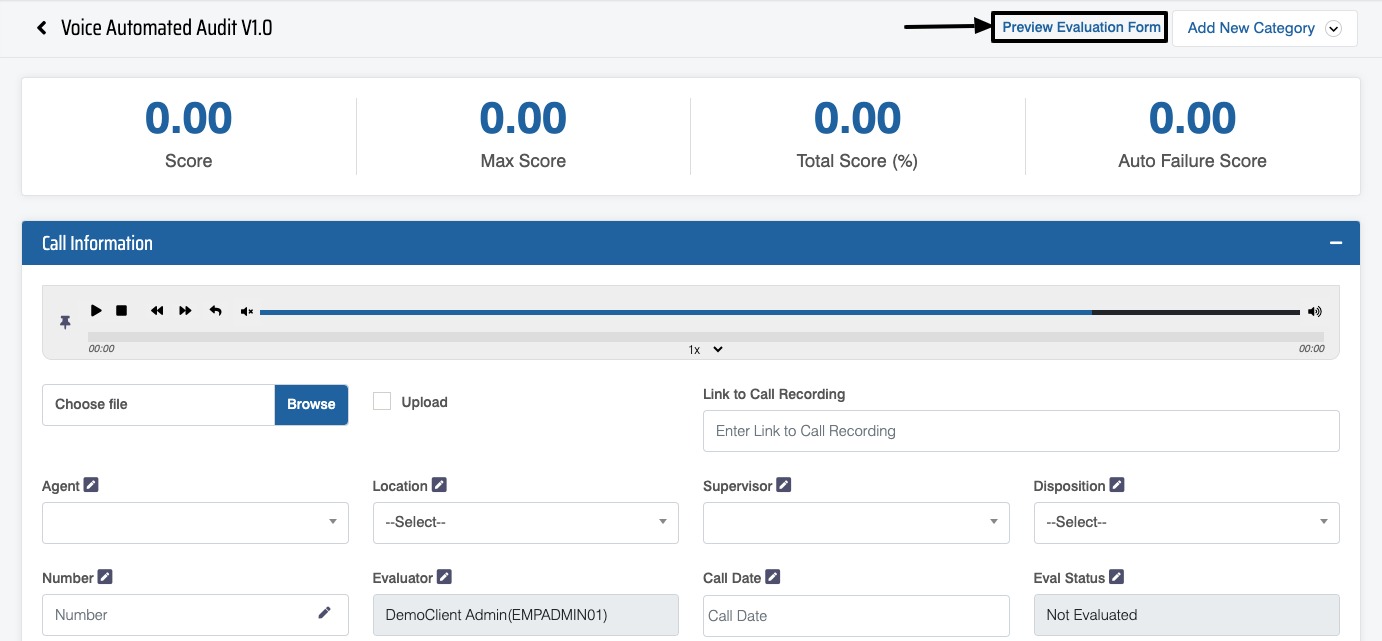 button to submit the evaluation form. To know more about the Preview Evaluation Form, refer to Preview Form.