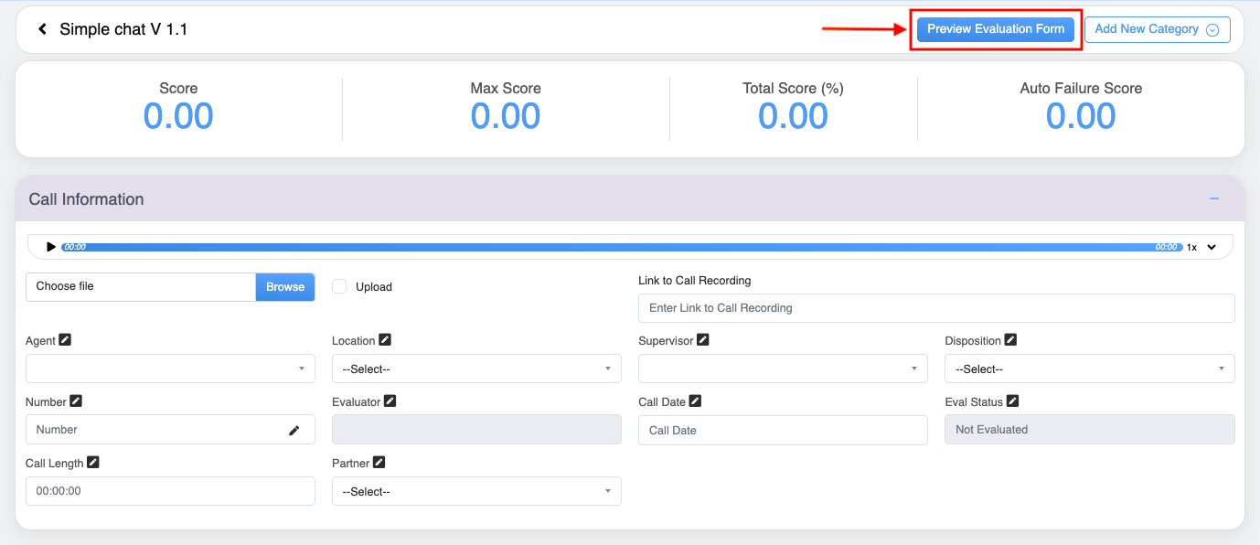 - Max Score: Displays the maximum score achieved in the evaluation form.