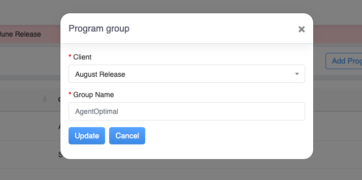 Click on the Edit icon displayed under the Action column to edit a particular program group and the Program Group window will be displayed as shown below: