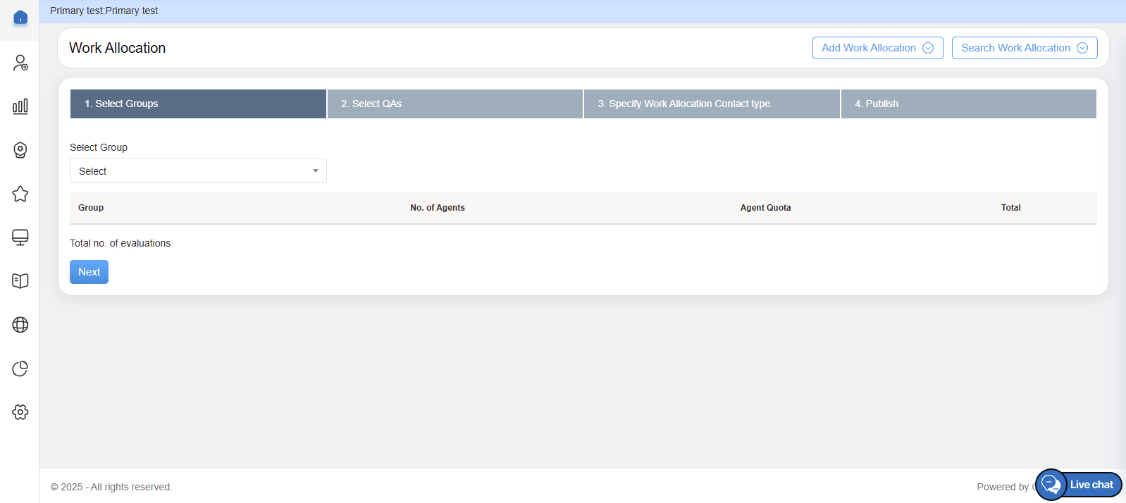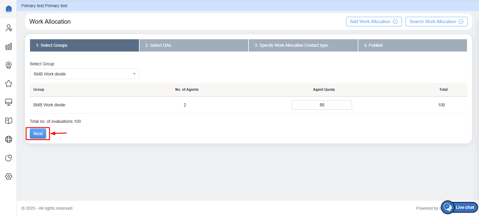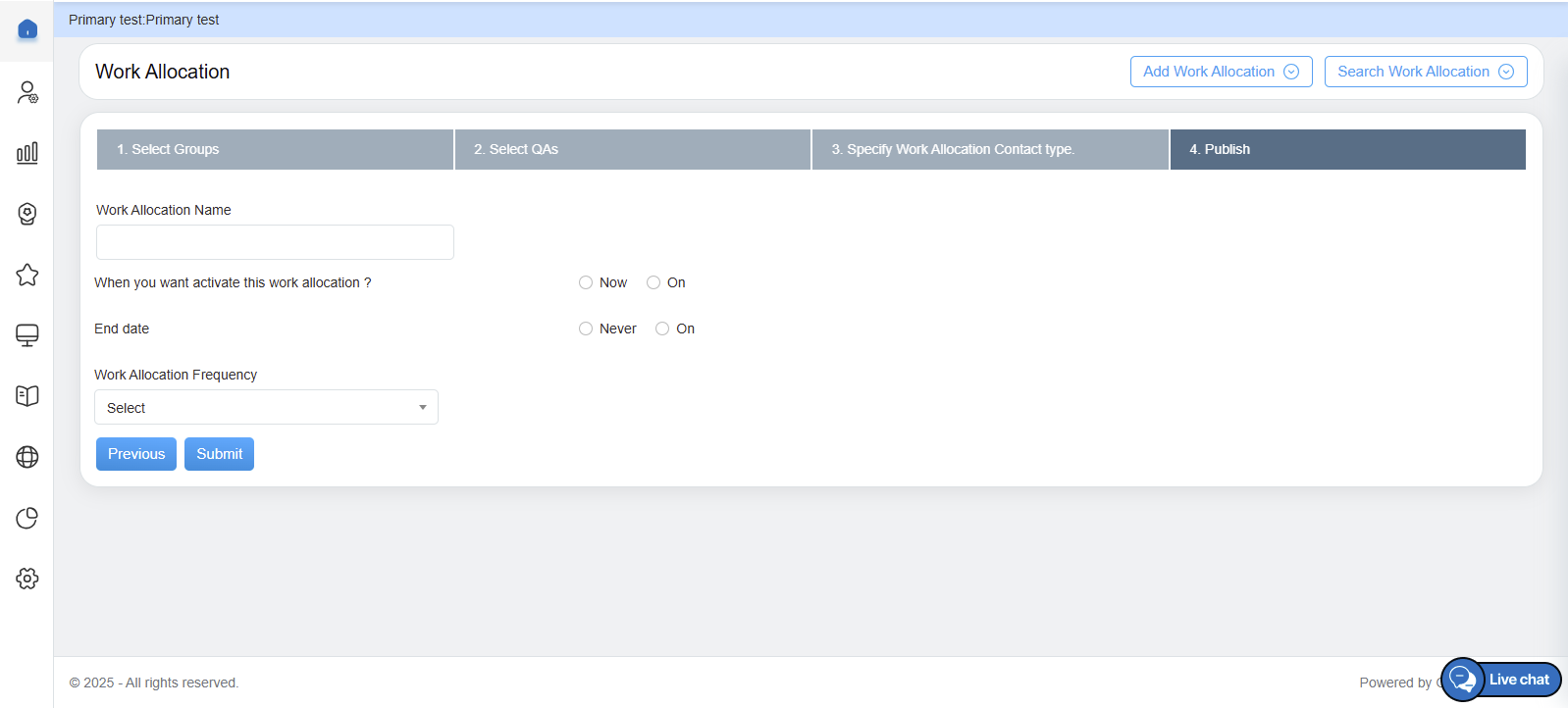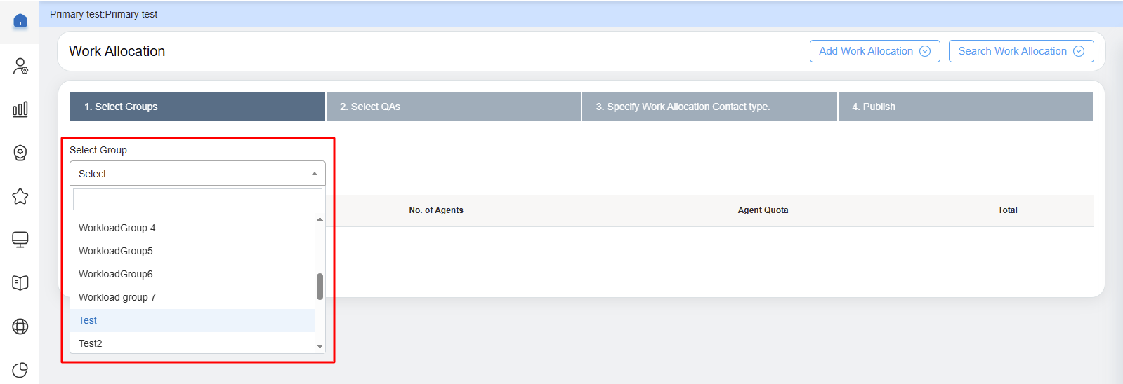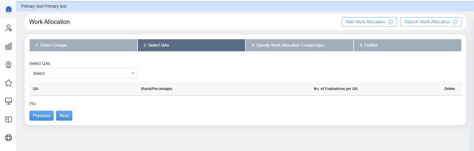 - Work Allocation Name – Enter the name of the work allocation to be assigned to the QAs in the text box.
