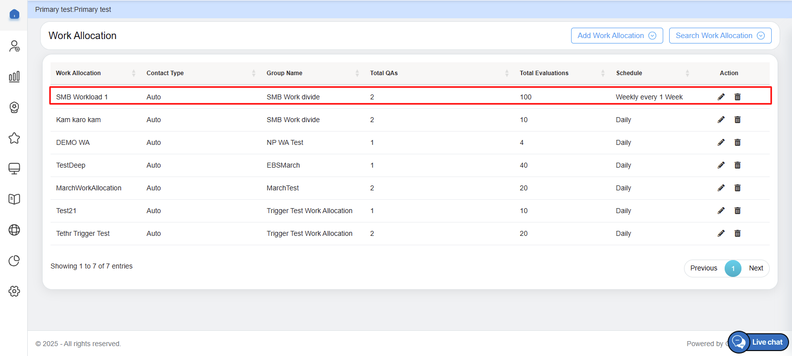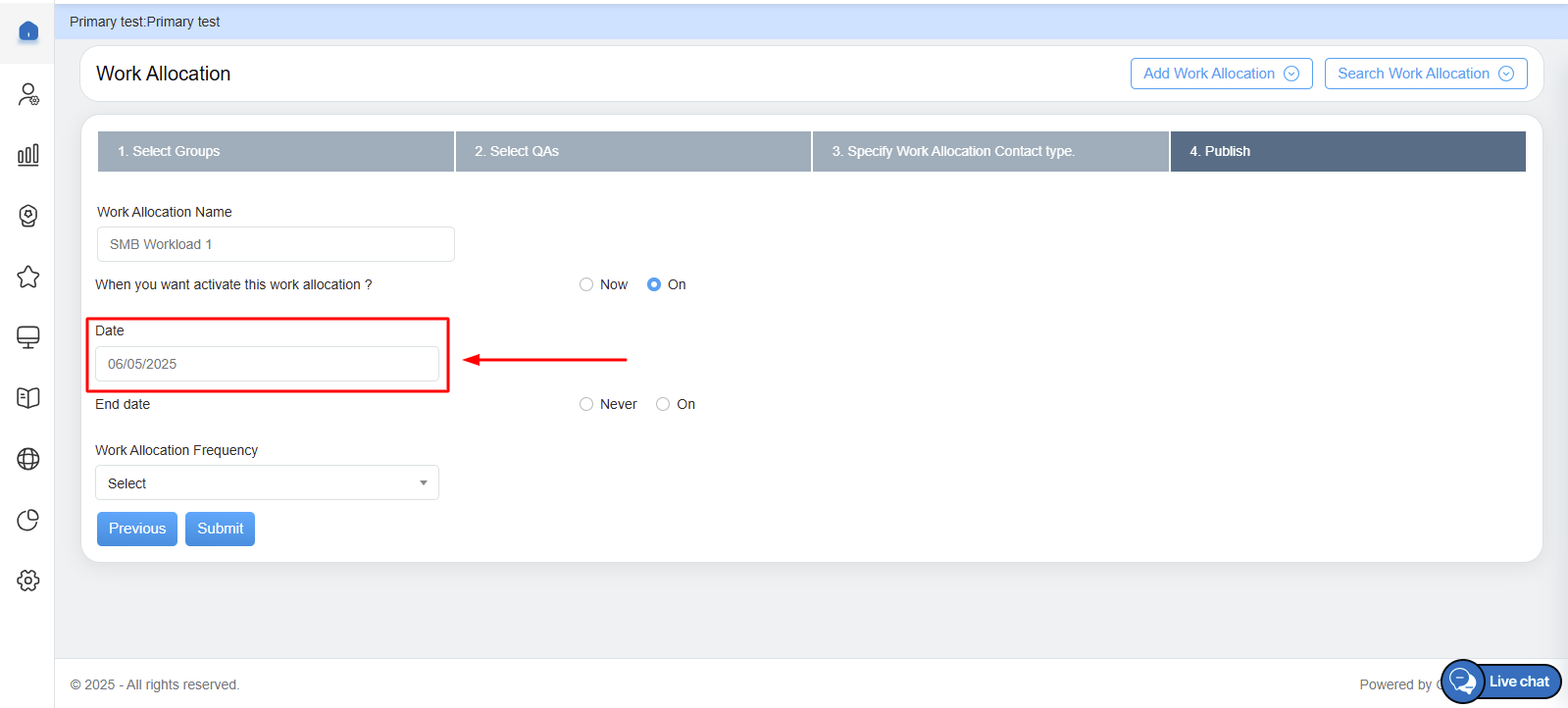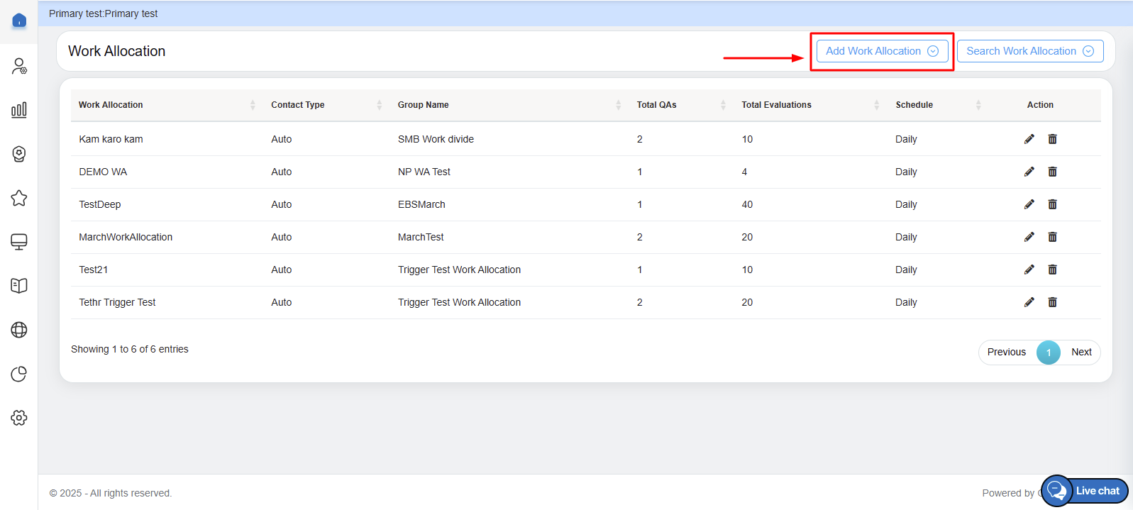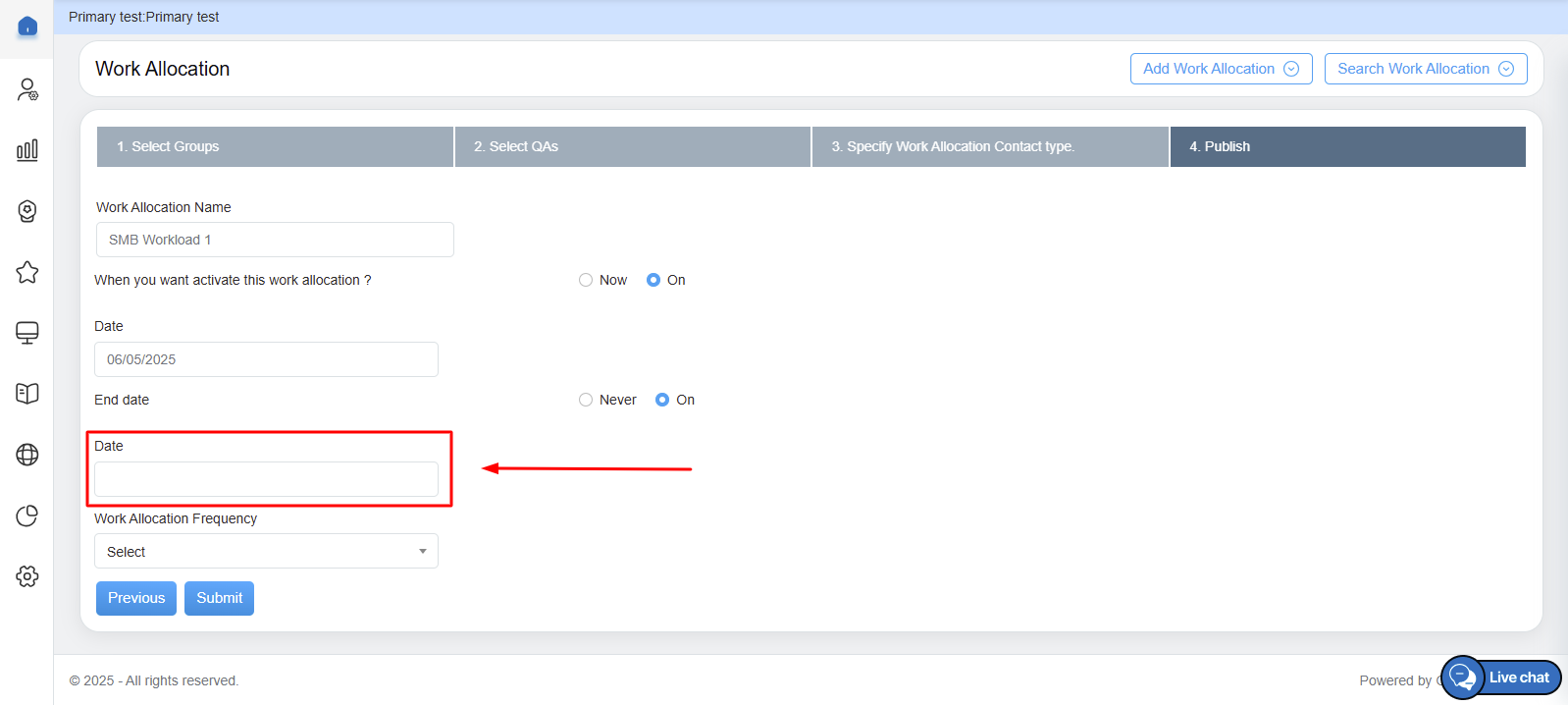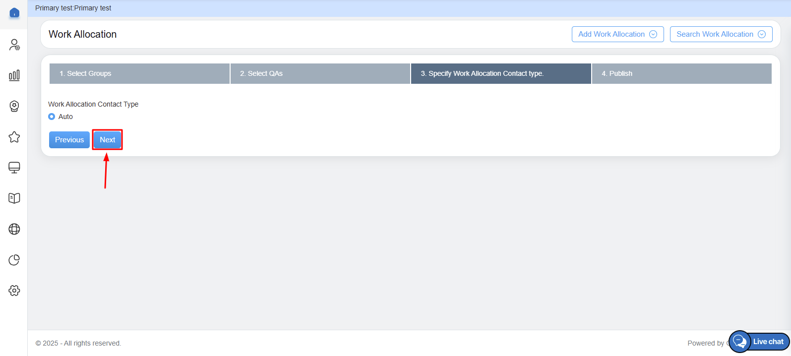 - Work Allocation Name – Enter the name of the work allocation to be assigned to the QAs in the text box.