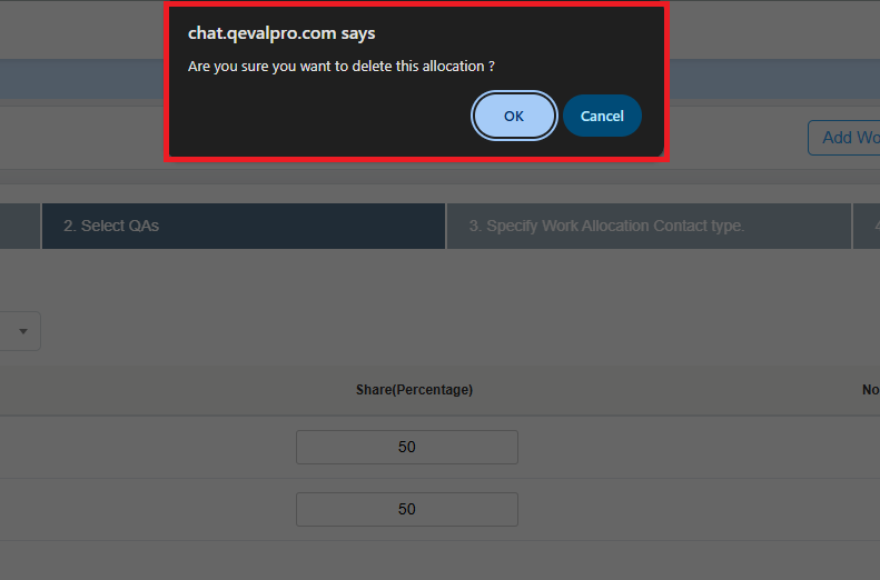 - Make sure to enter such value under Share (Percentage) which makes the No. of Evaluations per QA as a whole number. No. of Evaluations per QA cannot be in decimals.
