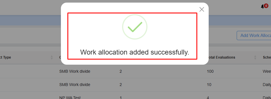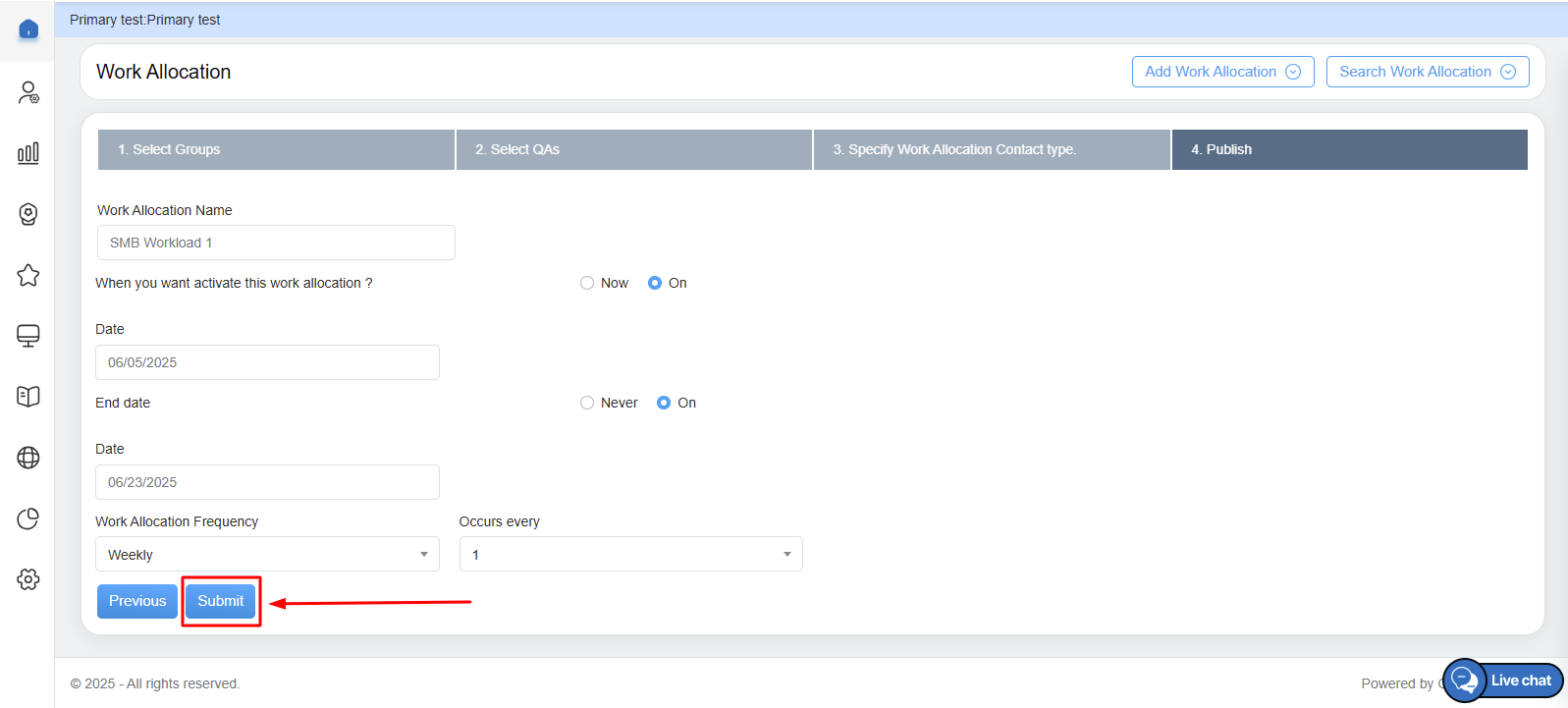- Once all four steps to add a new work allocation are configured, click on Submit button as shown below: