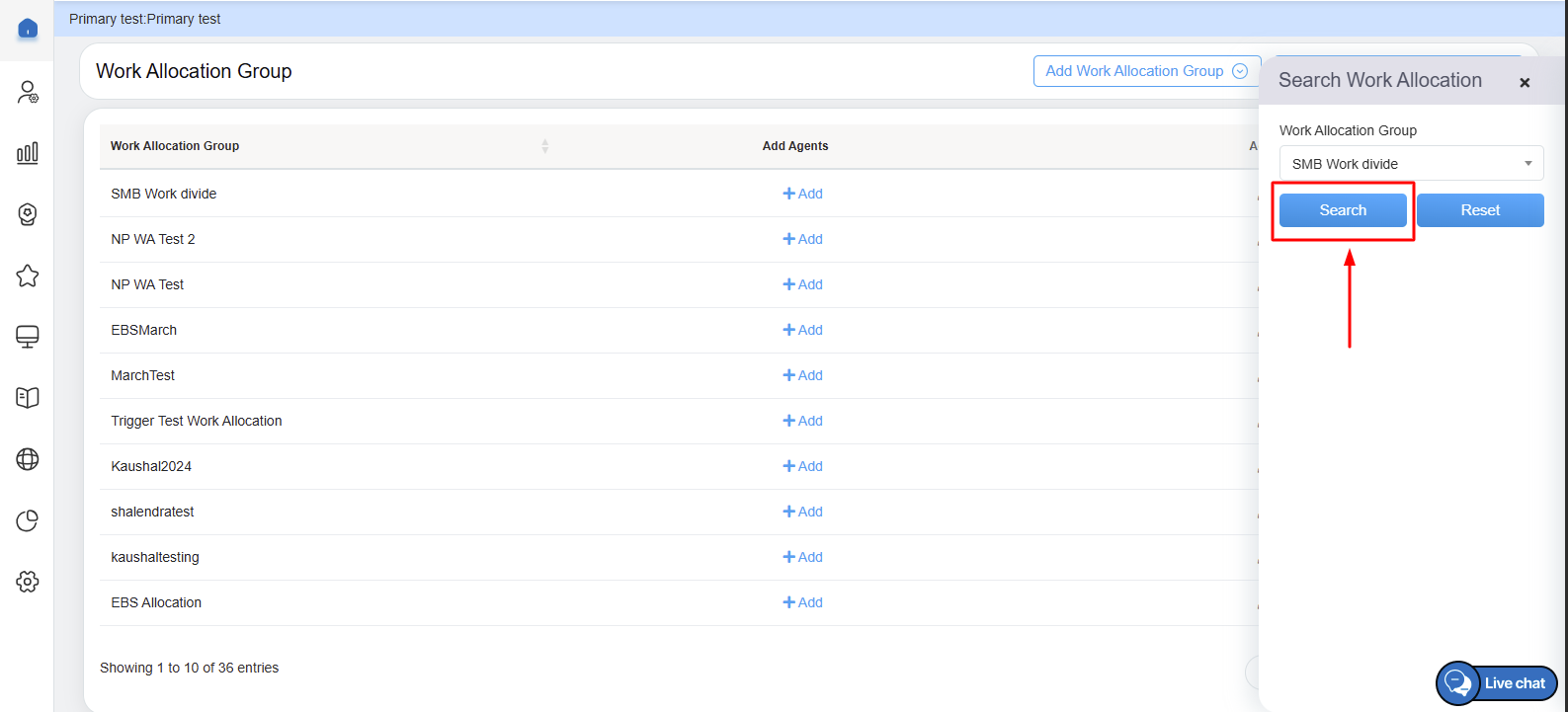 To search any specific work allocation group from the list of existing groups, click on the Search Work Allocation Group button.