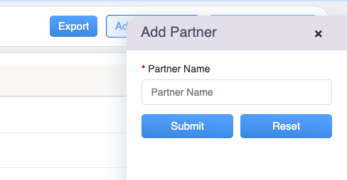 Under the Partner Name textbox, enter the name of the partner. After entering the partner’s name, click on the Submit button to add partner, else click on the Reset button to reset the field as shown below. An acknowledgement message will be displayed. Then, The user will be directed to the Manage Partner page, and the new partner’s name will be added and displayed in the grid as shown below: