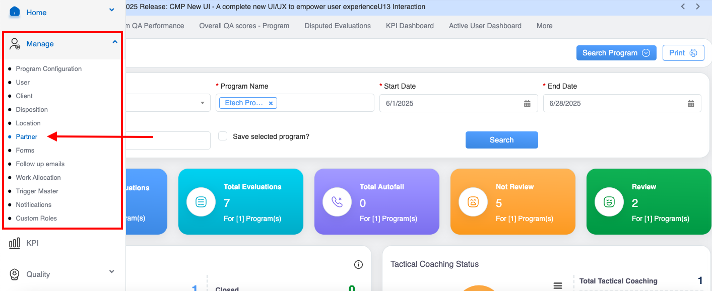 - Partner Name – Displays the name of the partner added in the QEval system.