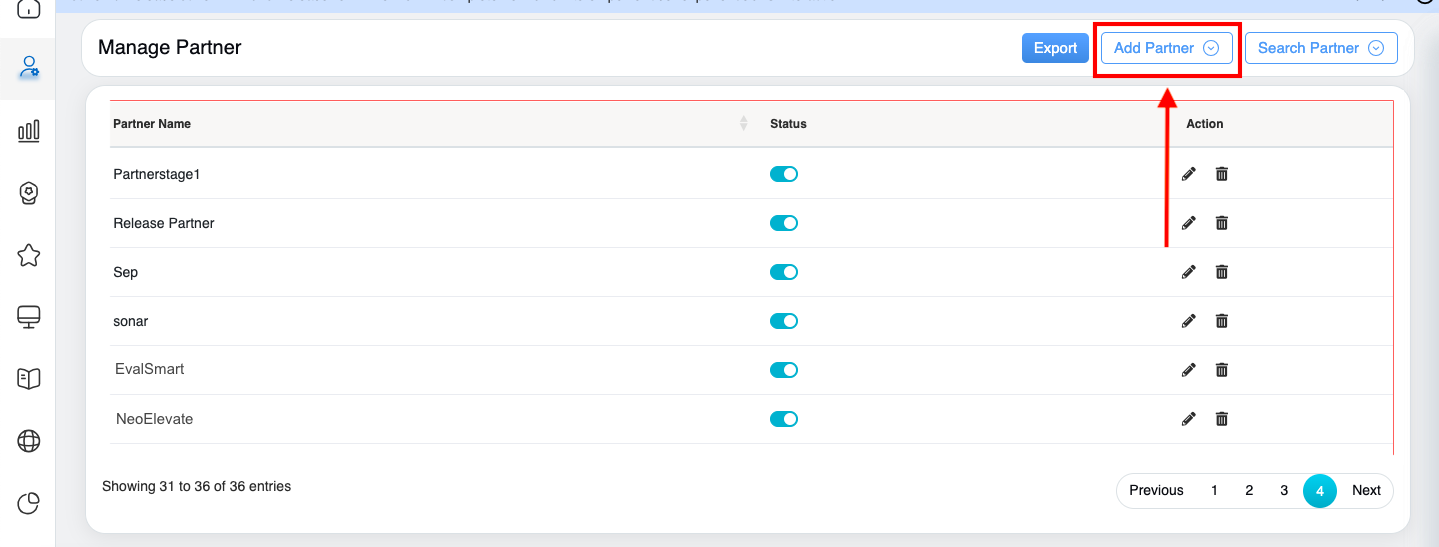 - Add Partner – This button assists the admin to add new client in the QEval System.