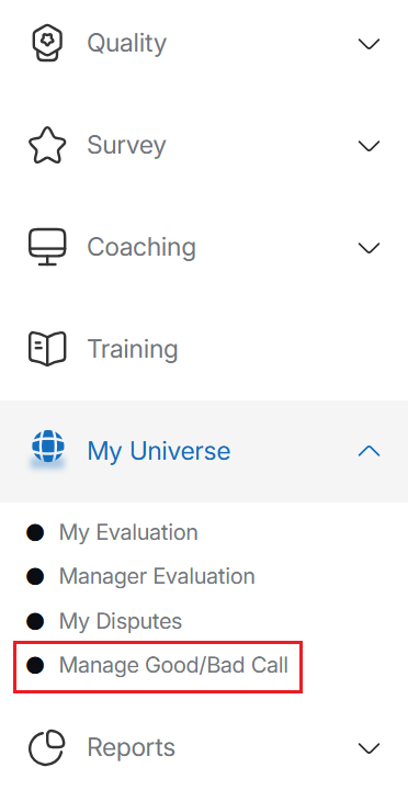 To access this functionality, select My Universe > Manage Good/Bad Call.