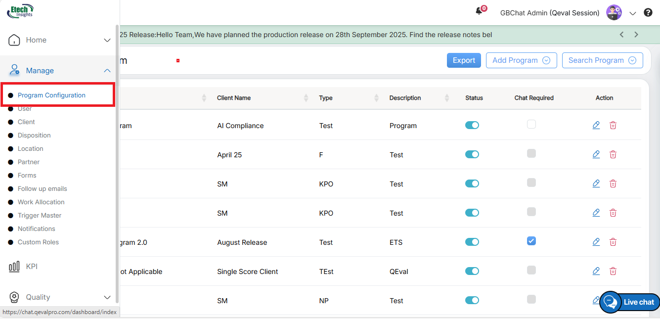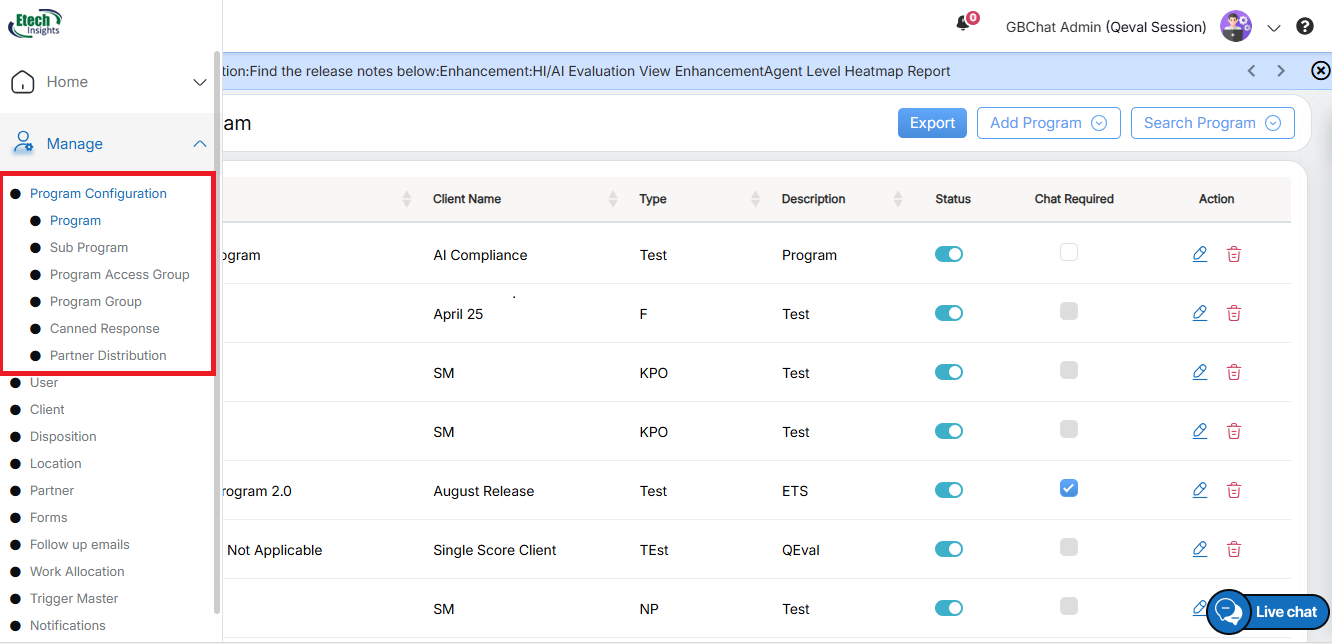 To access all the above-mentioned features, then select Manage > Program Configuration as shown below: