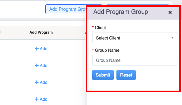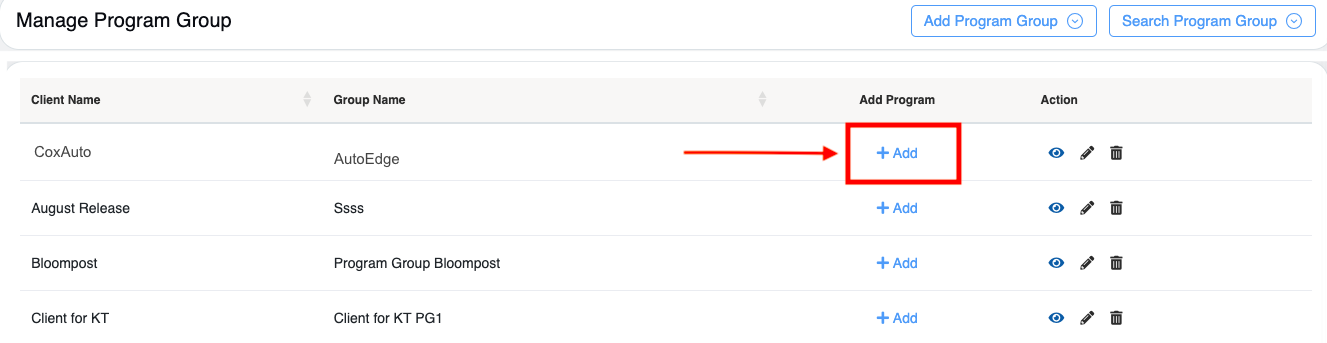 - To add a new Program Group, click on Add Program Group button.