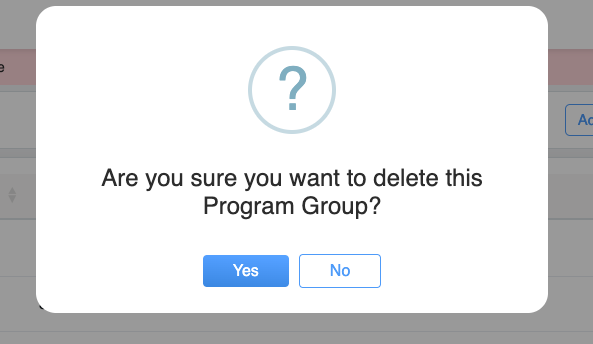 button to continue with the deletion of the program group or click