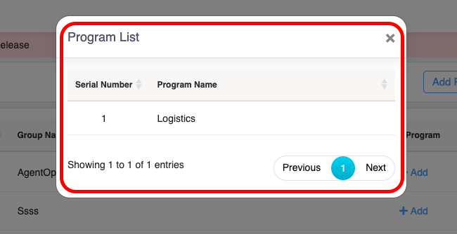 icon displayed under the Action column to view the particular program group and the Program List window will be displayed as shown below: