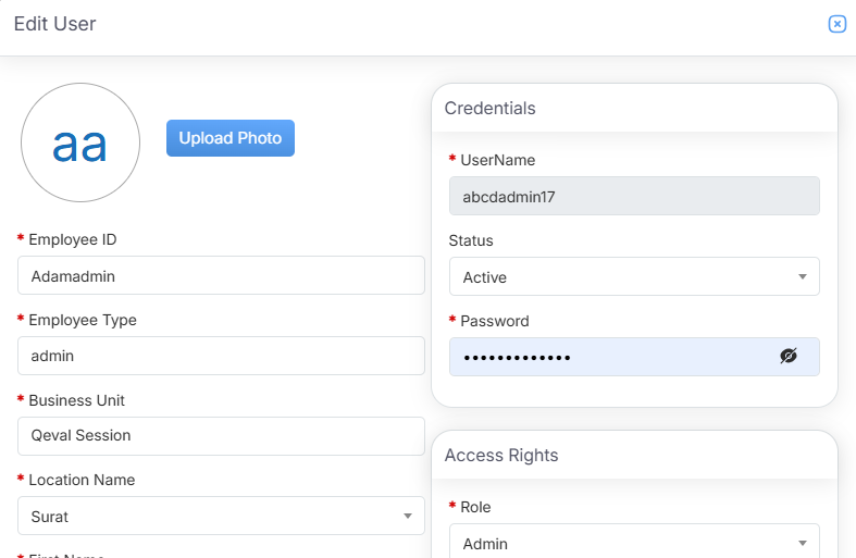 Click on the Edit icon displayed under the Action column to edit any details of a particular user and the Edit User window will be displayed as shown below: