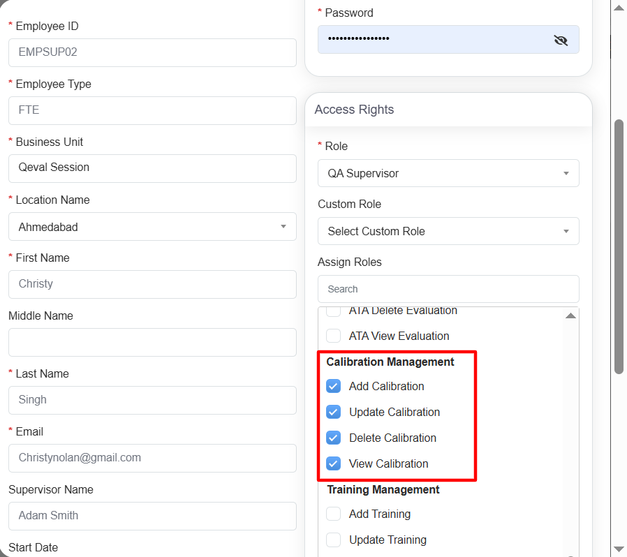 From the Access Rights section, select the checkbox(es) displayed under Calibration Management section as shown below: