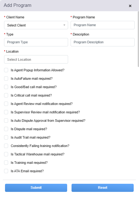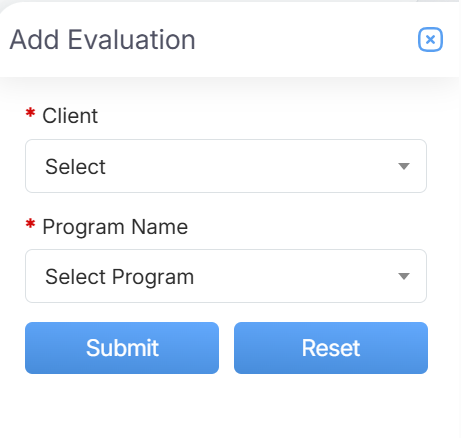 Select the Client Name and Program Name from the respective dropdown list. Then click on the Submit button to proceed with the evaluation.