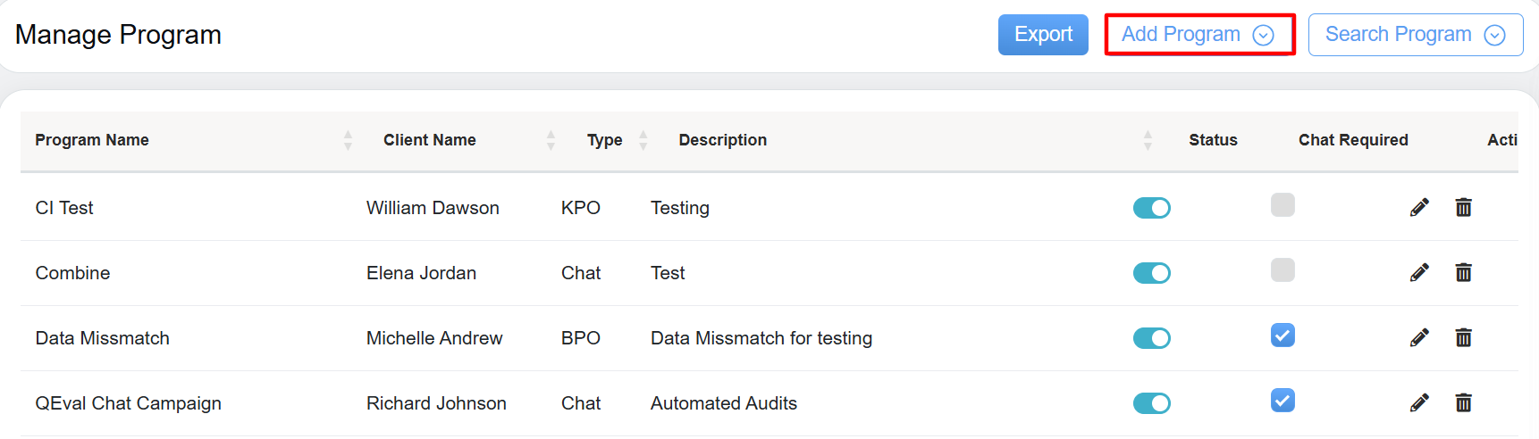 Once the evaluation form is created for any program of the client, the QA Verifier can conduct the evaluation process through the particular evaluation form of that specific program.