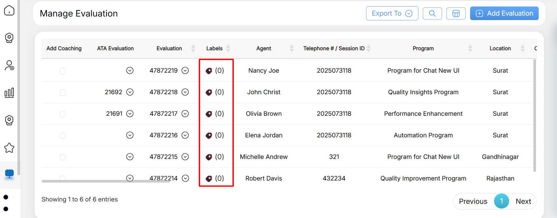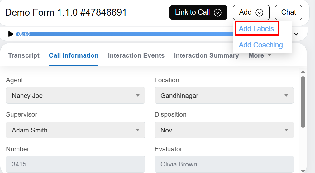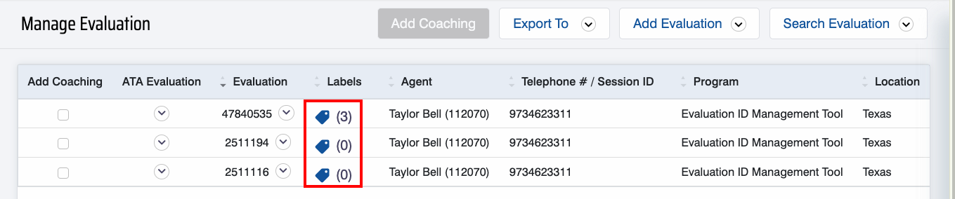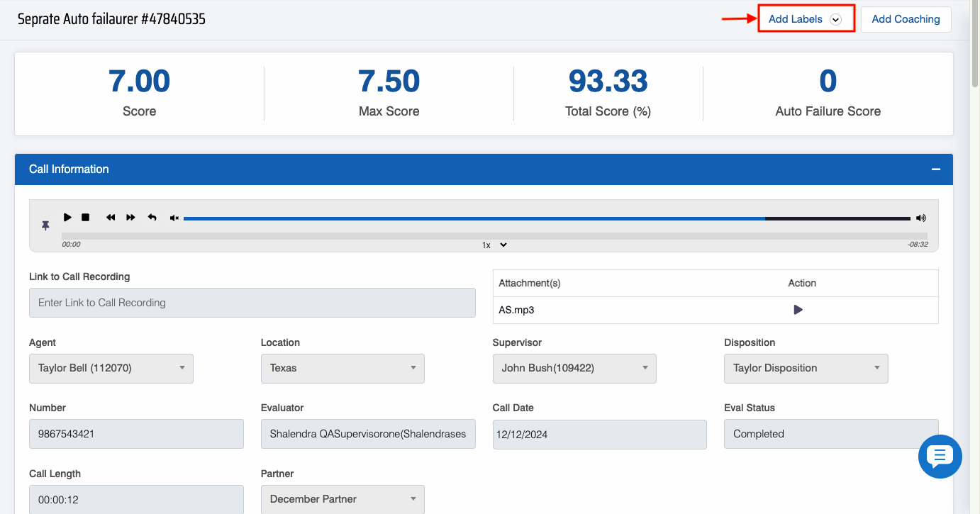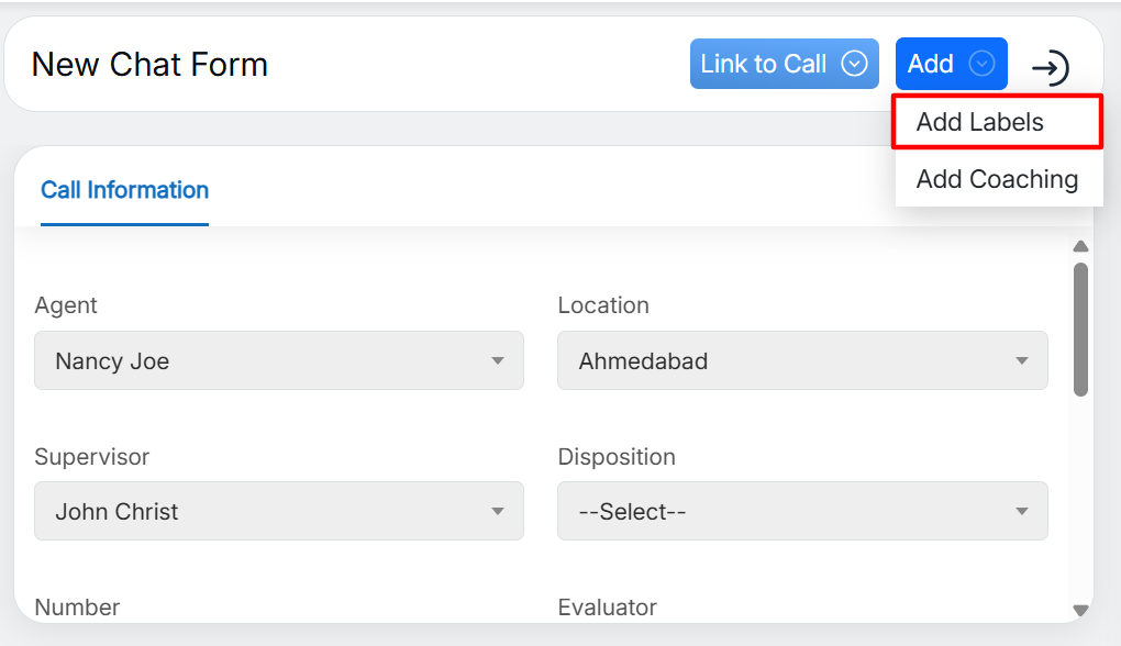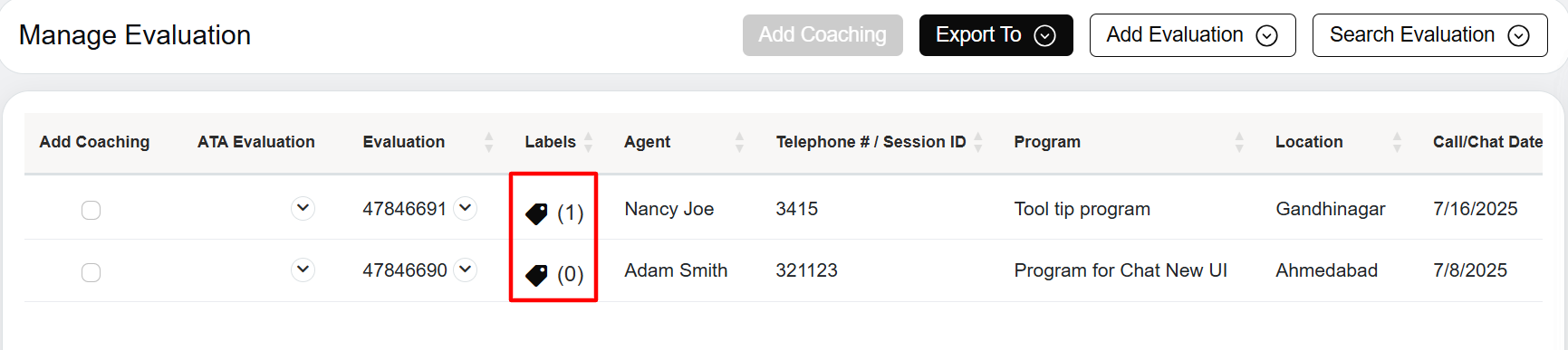 Labelling tool helps the user to have the ability to label the evaluation so that later it will be easy to find evaluations for various use cases such as training, reference for calibration, coaching, and any other case suite to the client. It is helpful in order to share the evaluation to other users.