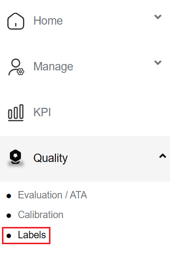 In order to open the “Labels” which you have created, go to menu section on the left side panel, under “Quality”, there is an option of “Labels” as highlighted in below screenshot:-