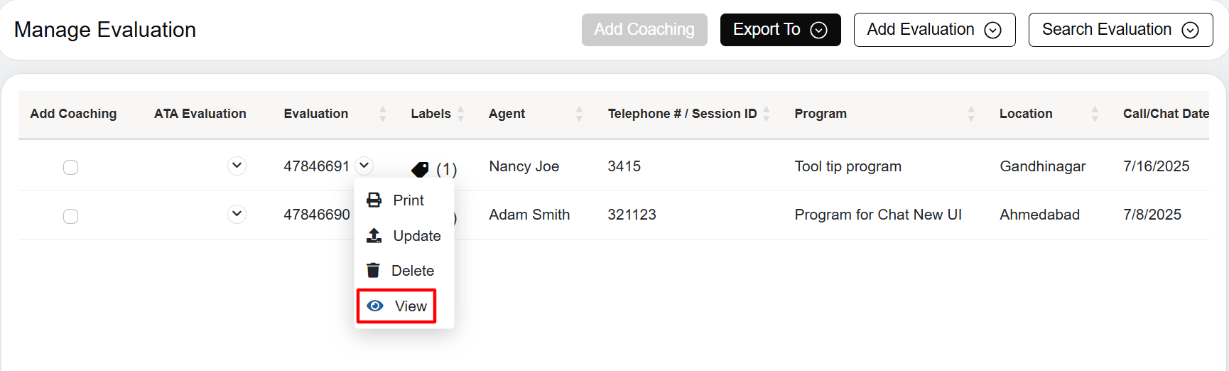 In order to label the evaluation, open any evaluation which is evaluated by clicking on “View” option as highlighted in below screenshot:-
