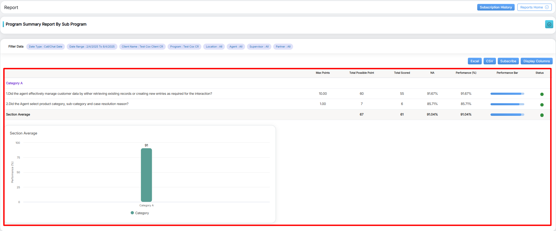 The Program Summary Report by Sub Program displays the program summary report for a particular duration and evaluation form.
