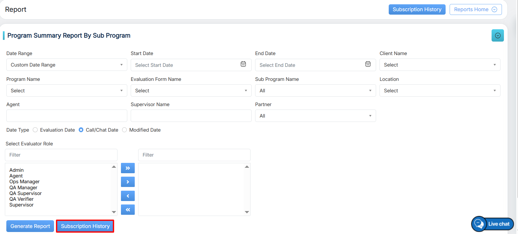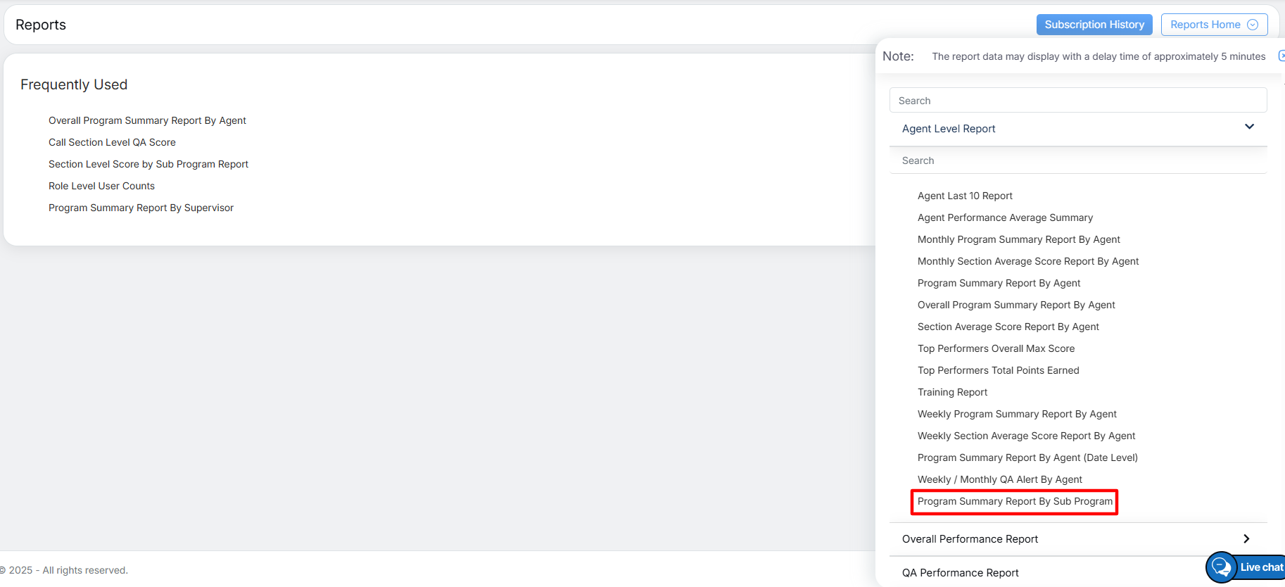 To view this report, select Reports > Report > Agent Level Report > Program Summary Report by Sub Program.