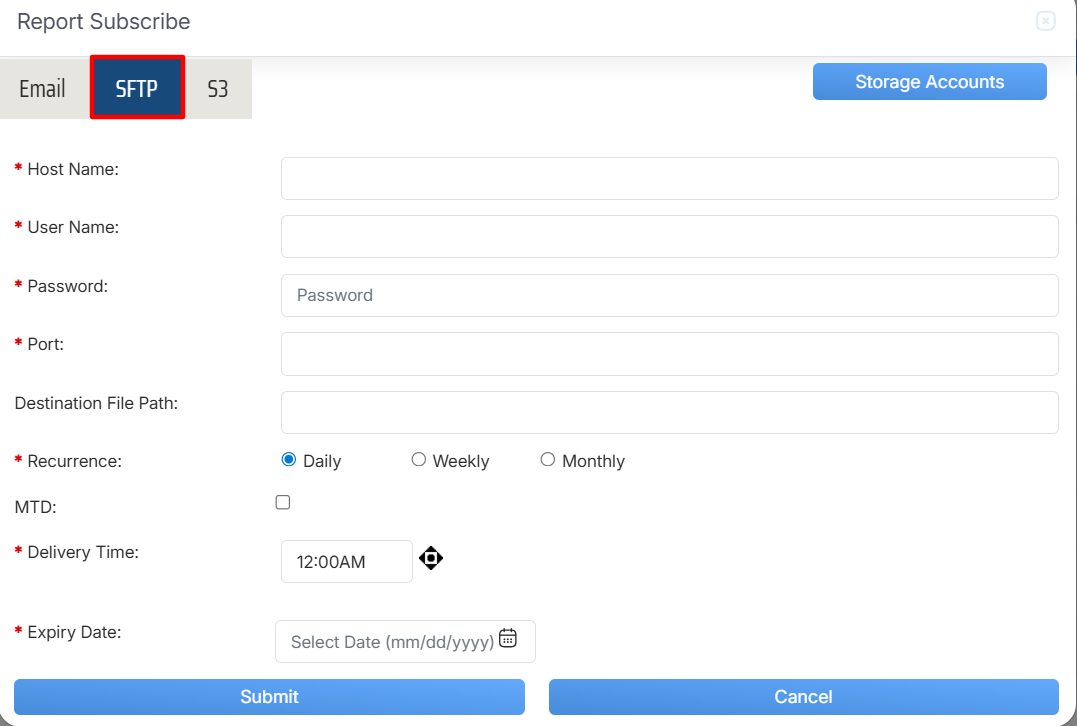 Report Subscribe > SFTP