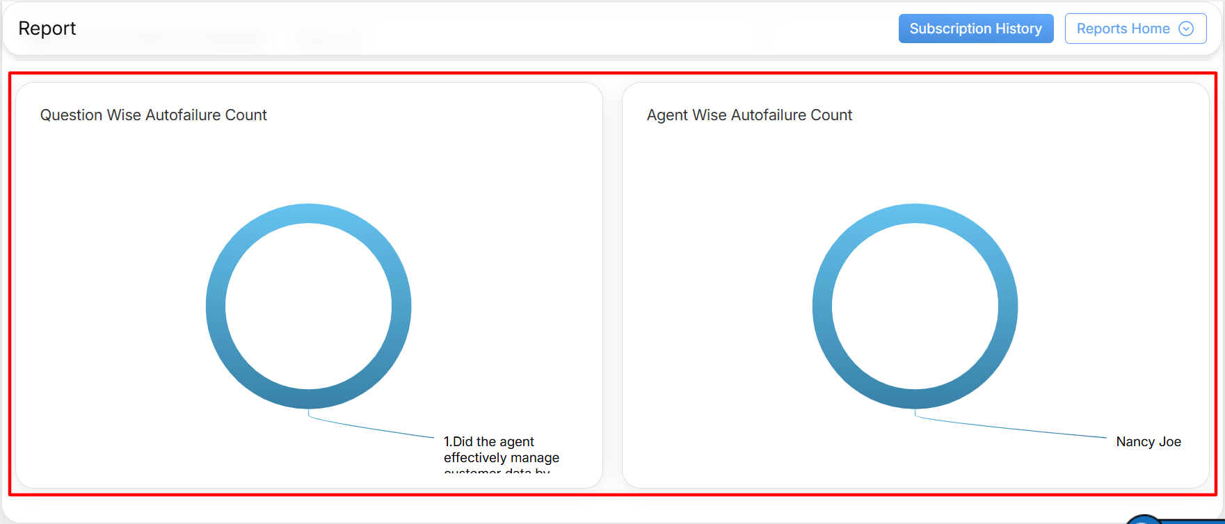 – Pie chart of agent-wise auto-failure details: This chart displays auto-failures categorized by agent, allowing user to see the failure rates of each agent for easier comparison and analysis.
