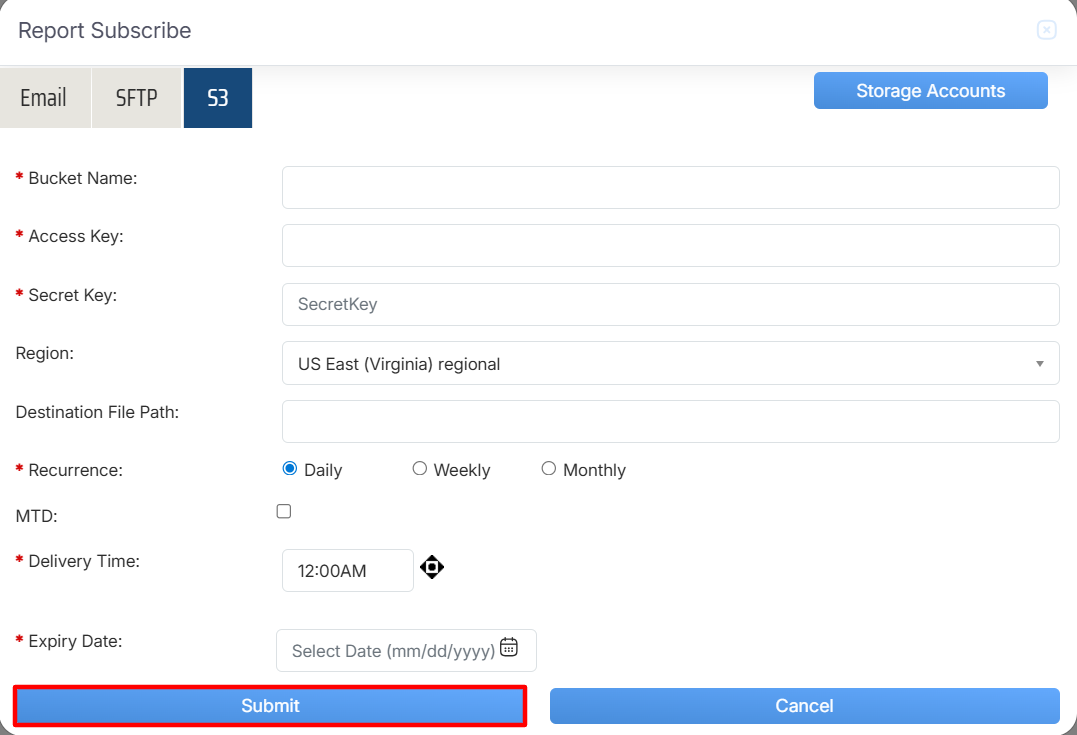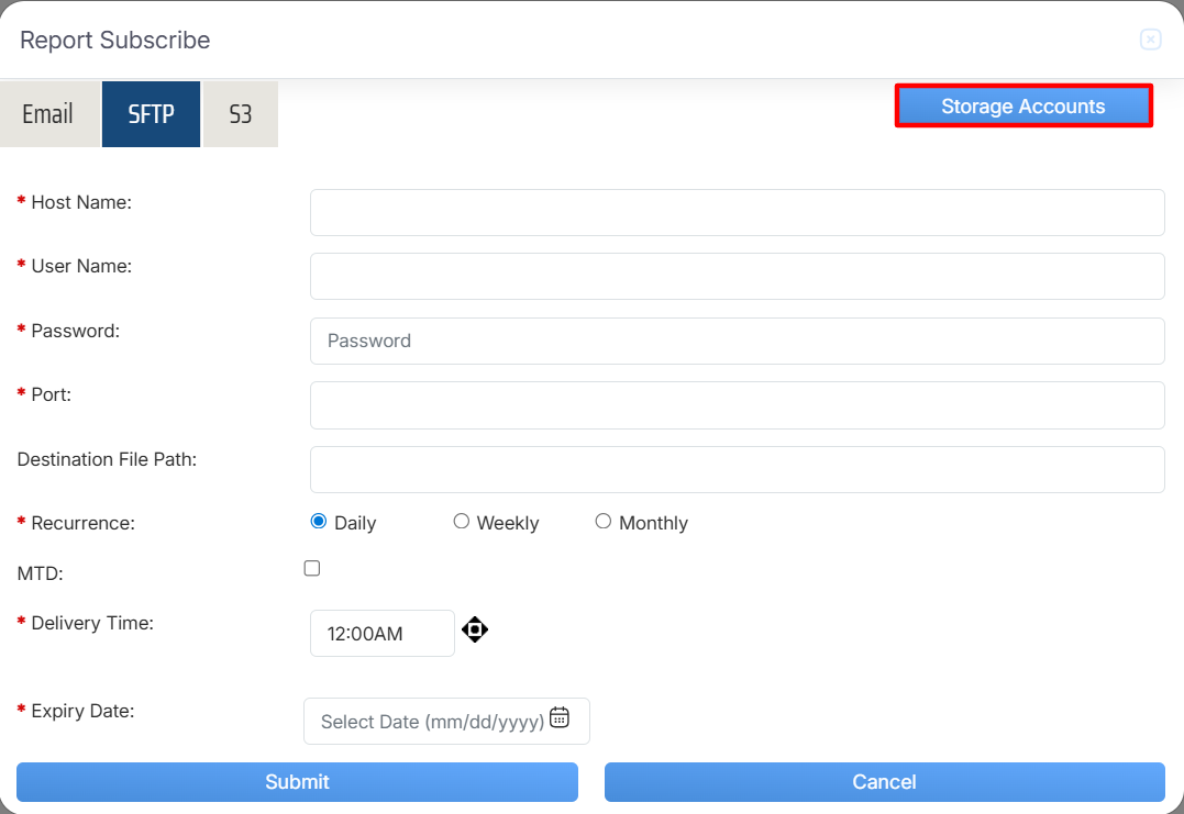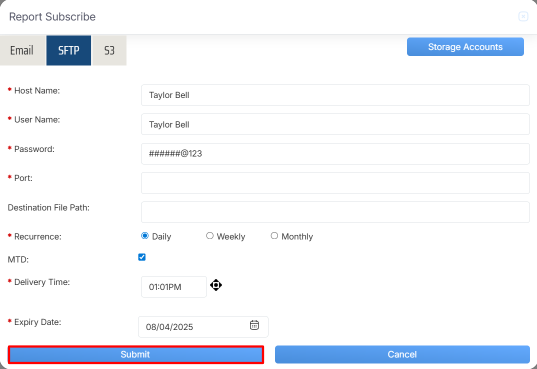 Report Subscribe > SFTP
