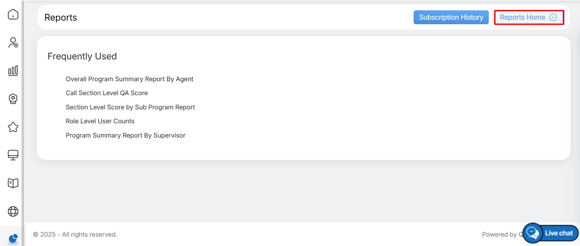 button or move the mouse on the left side of the page to open the menu bar, then click on the Reports