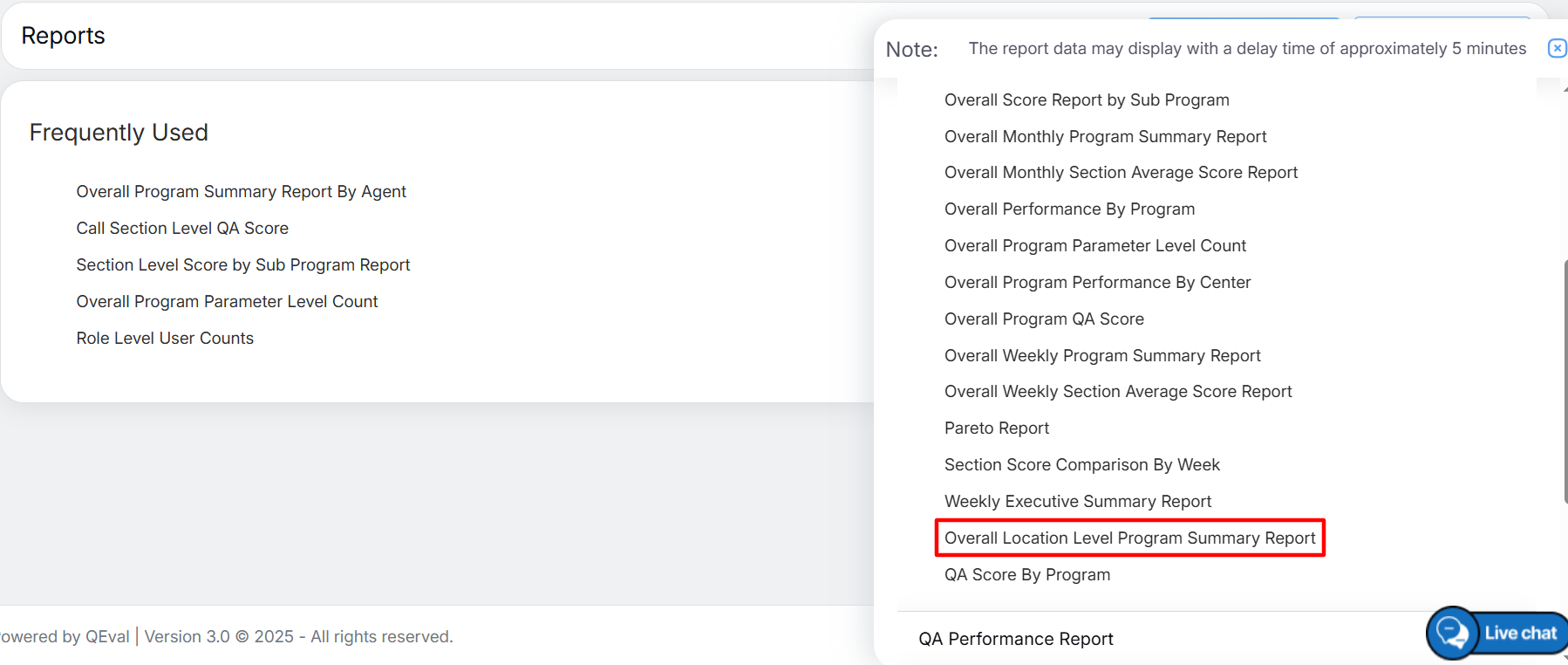 Overall Location Level Program Summary Report displays the weekly performance of the program. This allows to track the weekly QA trend of a specific program.