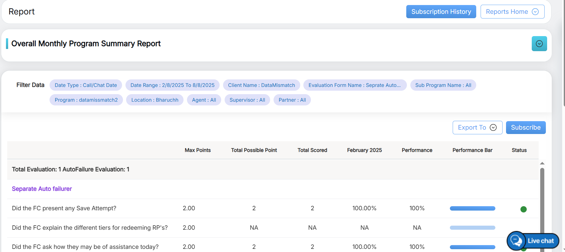 To view this report, select Overall Performance Report > Overall Monthly Program Summary Report.
