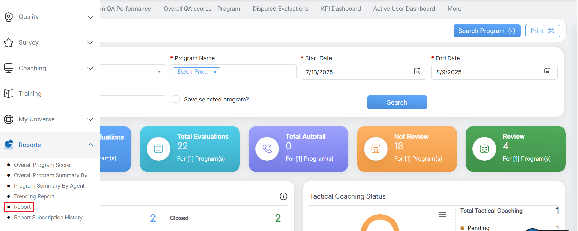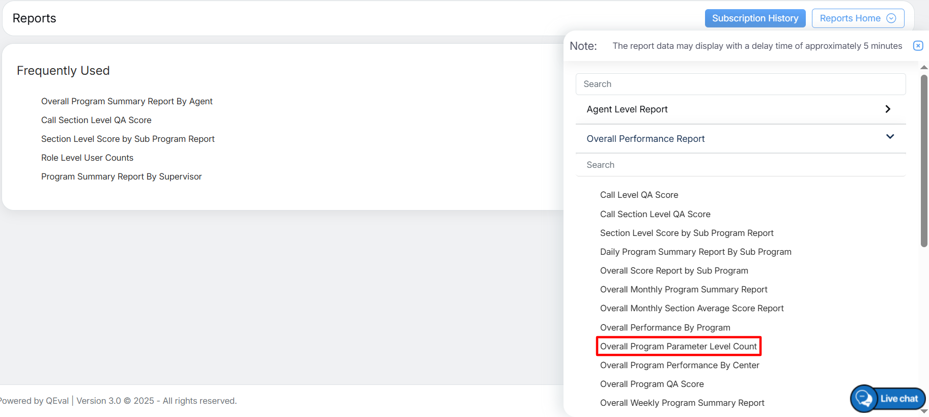 To view this report, select Overall Performance Report > Overall Program Parameter Level Count.