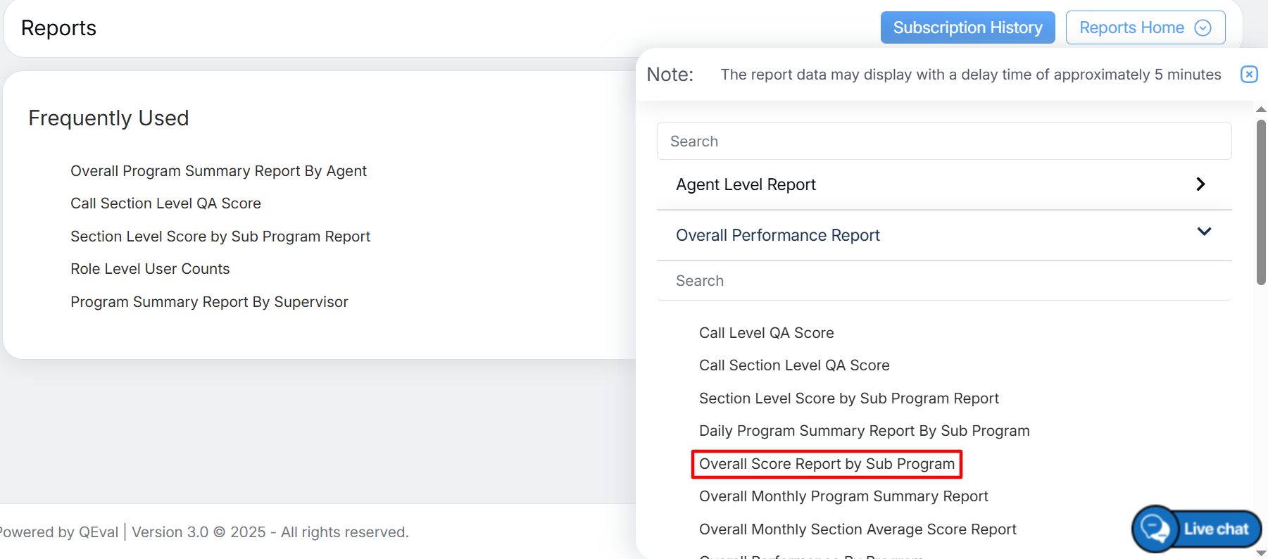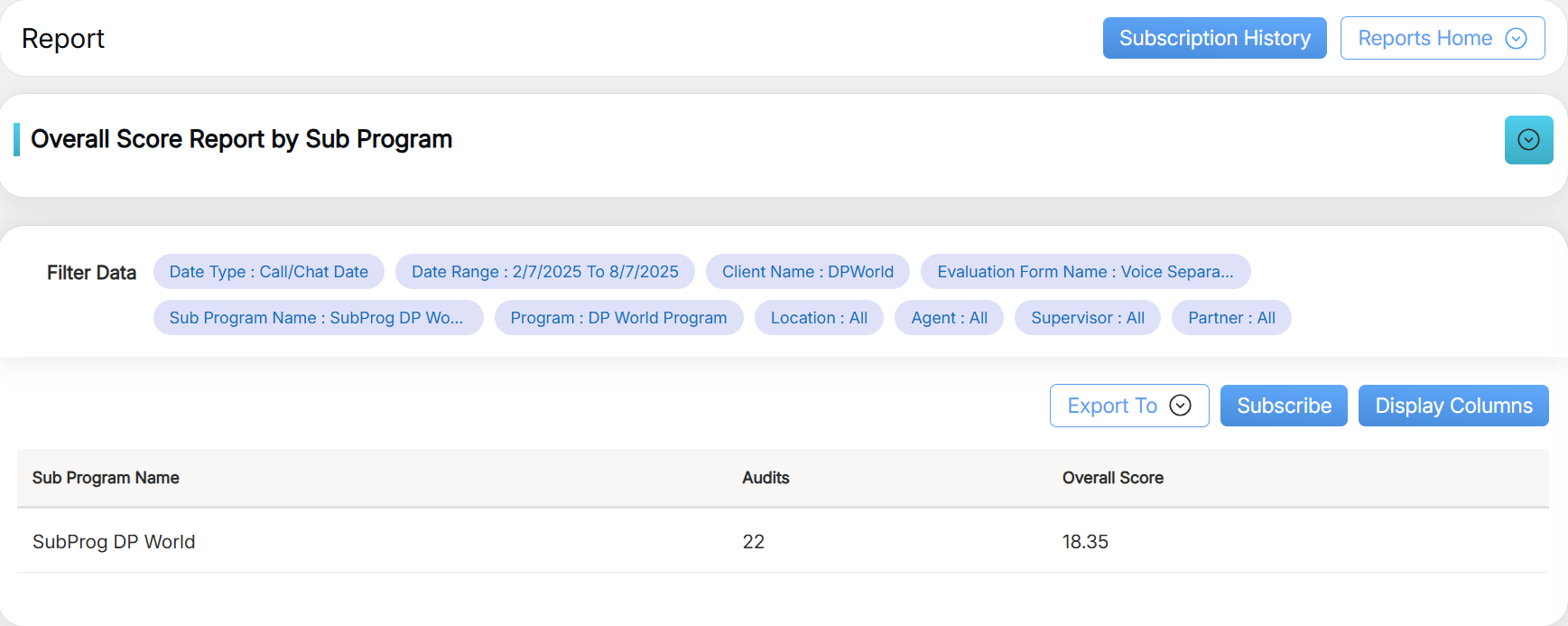To view this report, select Overall Performance Report > Overall Score Report by Sub Program.