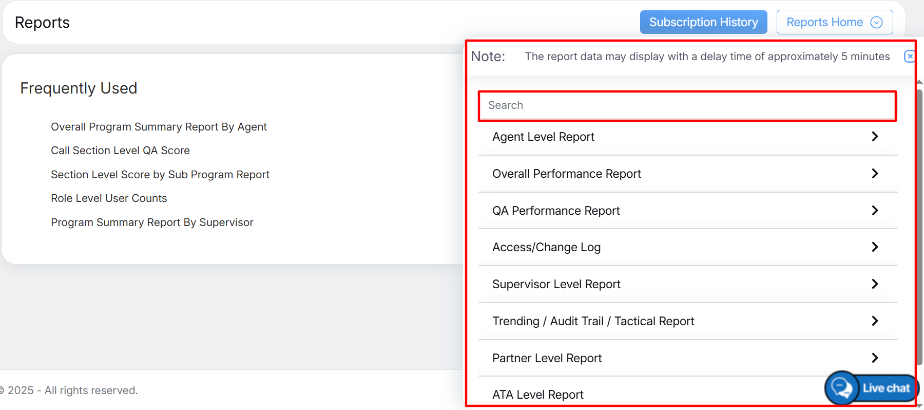 The Reports Home window will be opened on the same page. The Search Bar displayed on the window allows the user to search any specific report by entering keywords in the search bar text-box, as shown below: