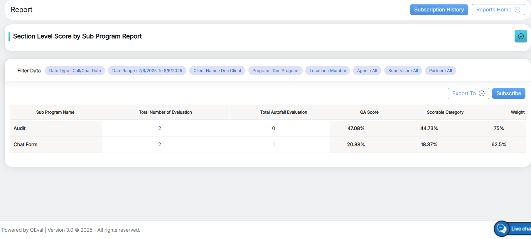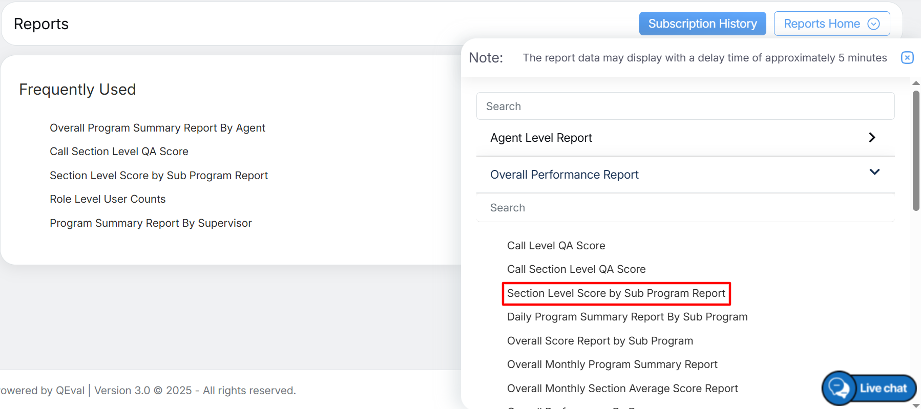 To view this report, select Overall Performance Report > Section Level Score by Sub Program.