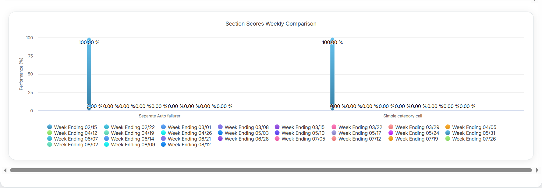 Section Score Comparison By Week displays the weekly comparison of a selected evaluation form for the selected duration.