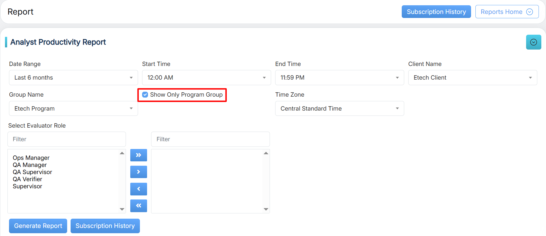 | Show Only Program Group | Select this checkbox to view the reports on the basis of only the program group. |