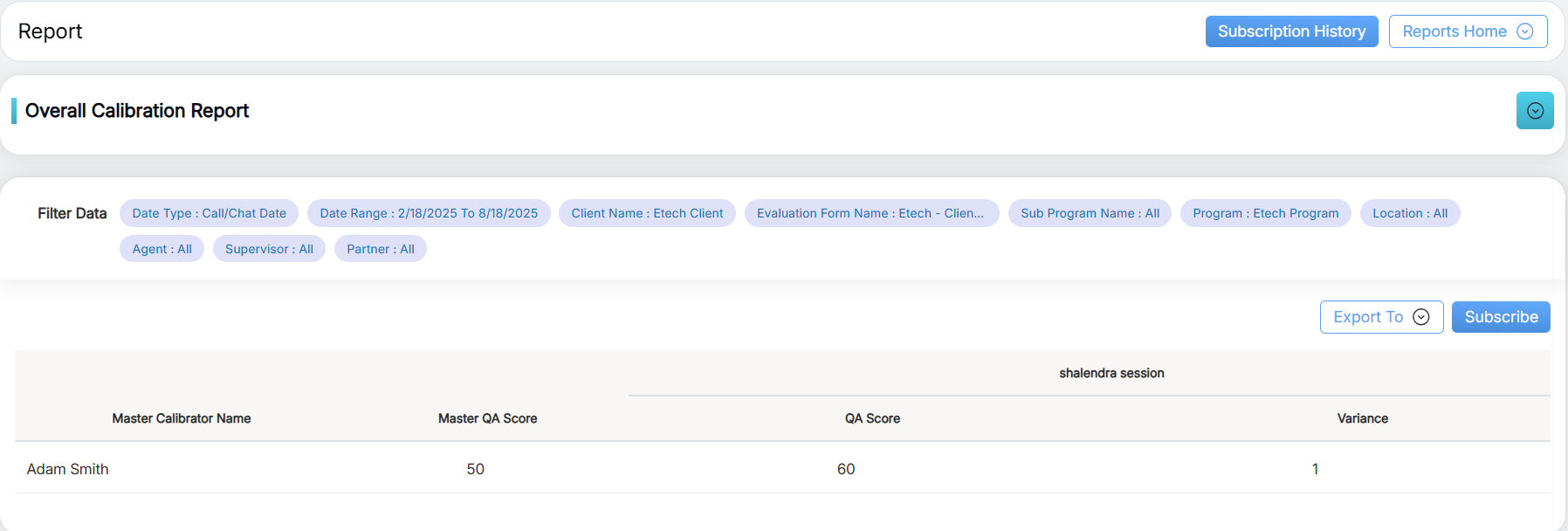 Overall Calibration Report displays the overall calibration scores of individual calibrators and Master Calibrators.
