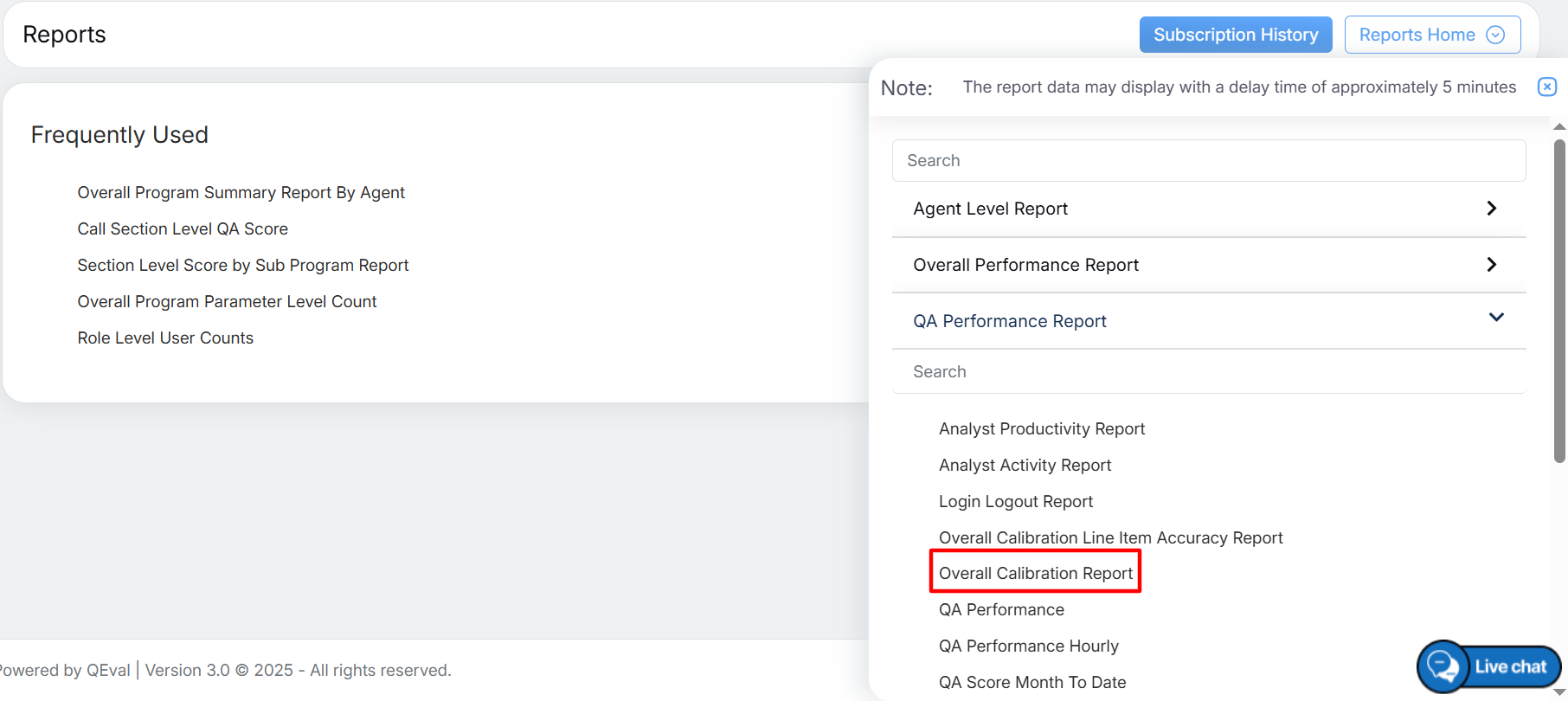 To view this report, select Reports > Report > QA Performance Report > Overall Calibration Report as shown below: