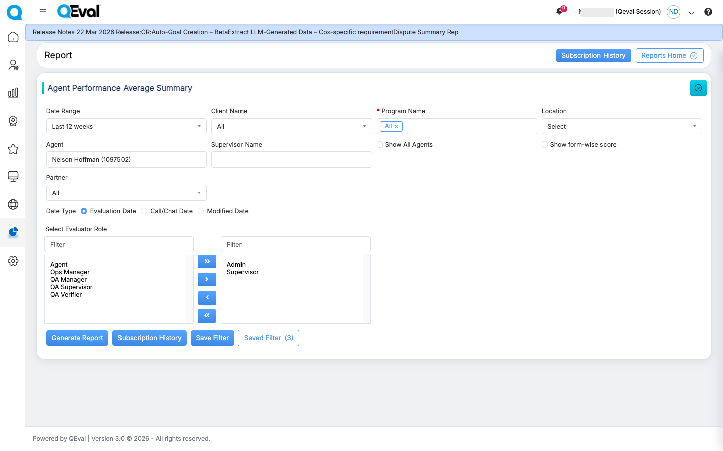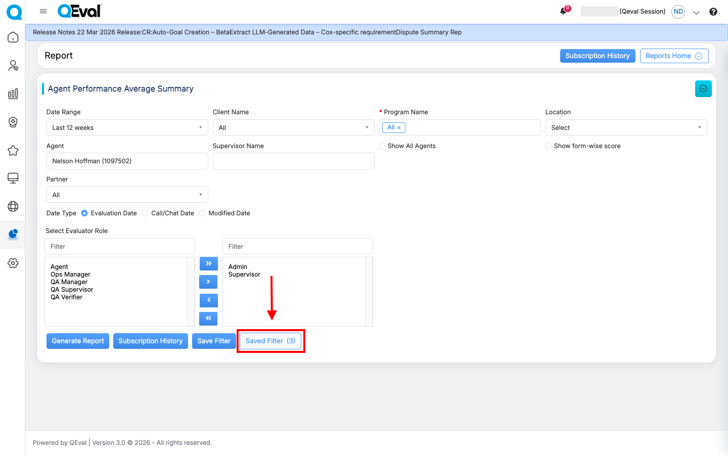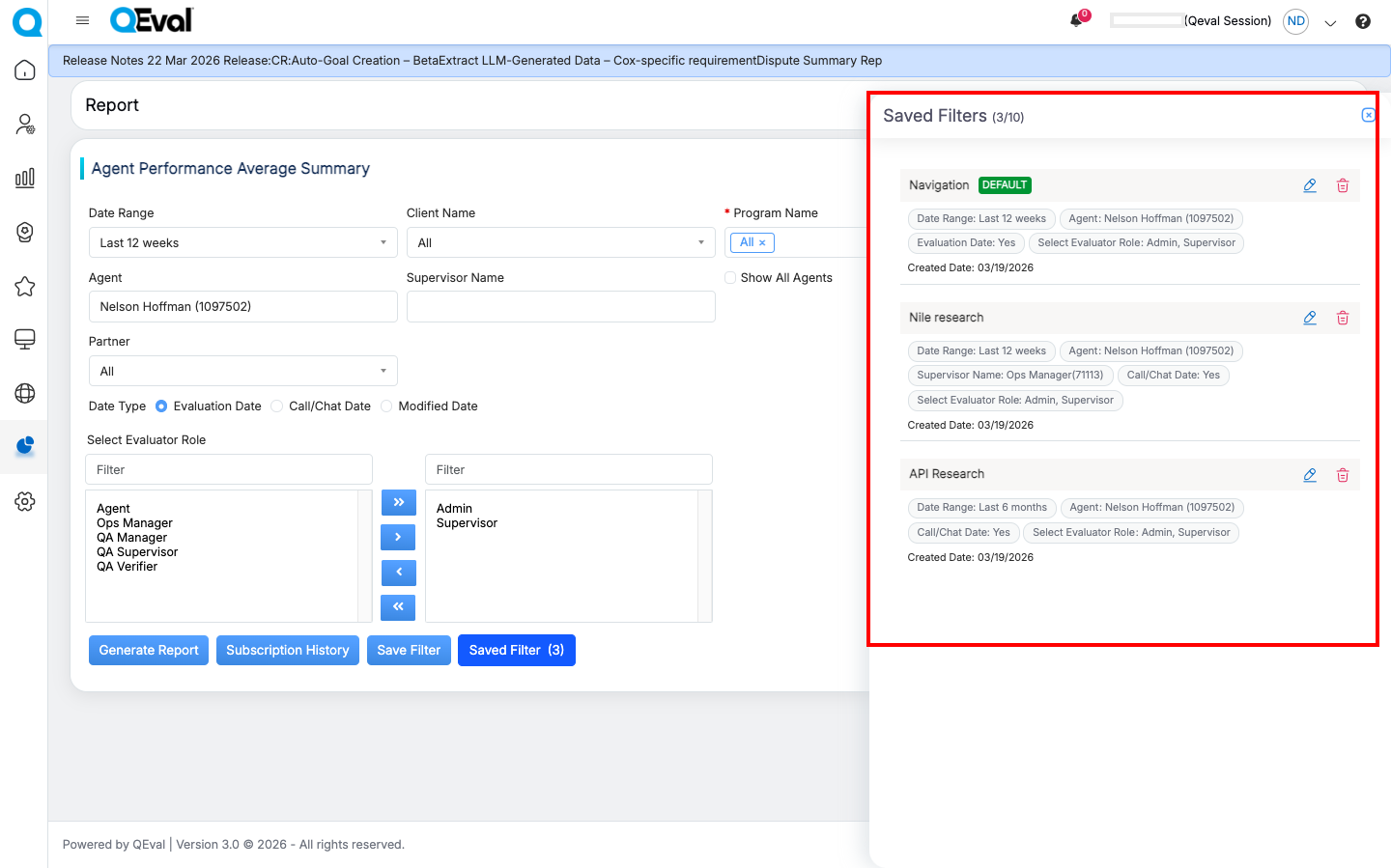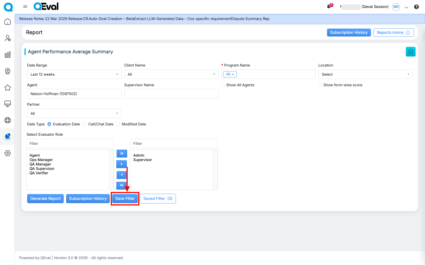 When a saved filter is applied, the system checks whether the user still has access to the associated Client, Program, or Evaluation Form included in the saved criteria.